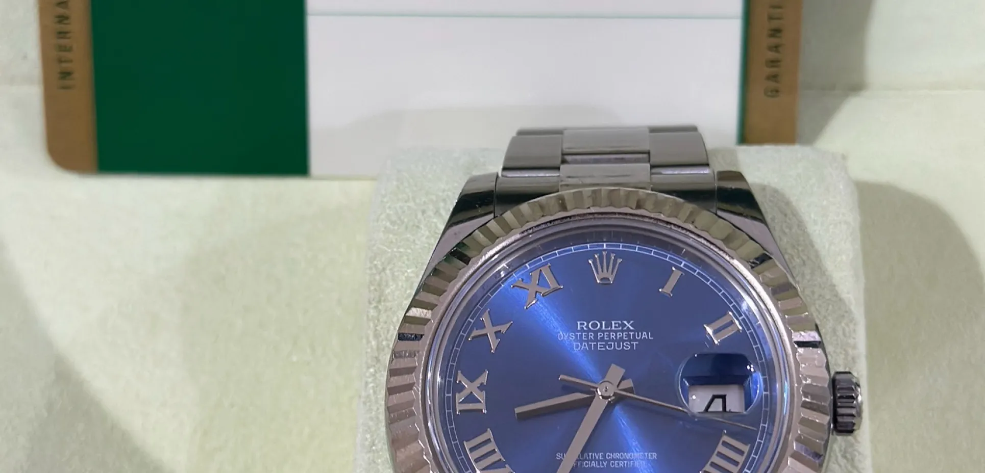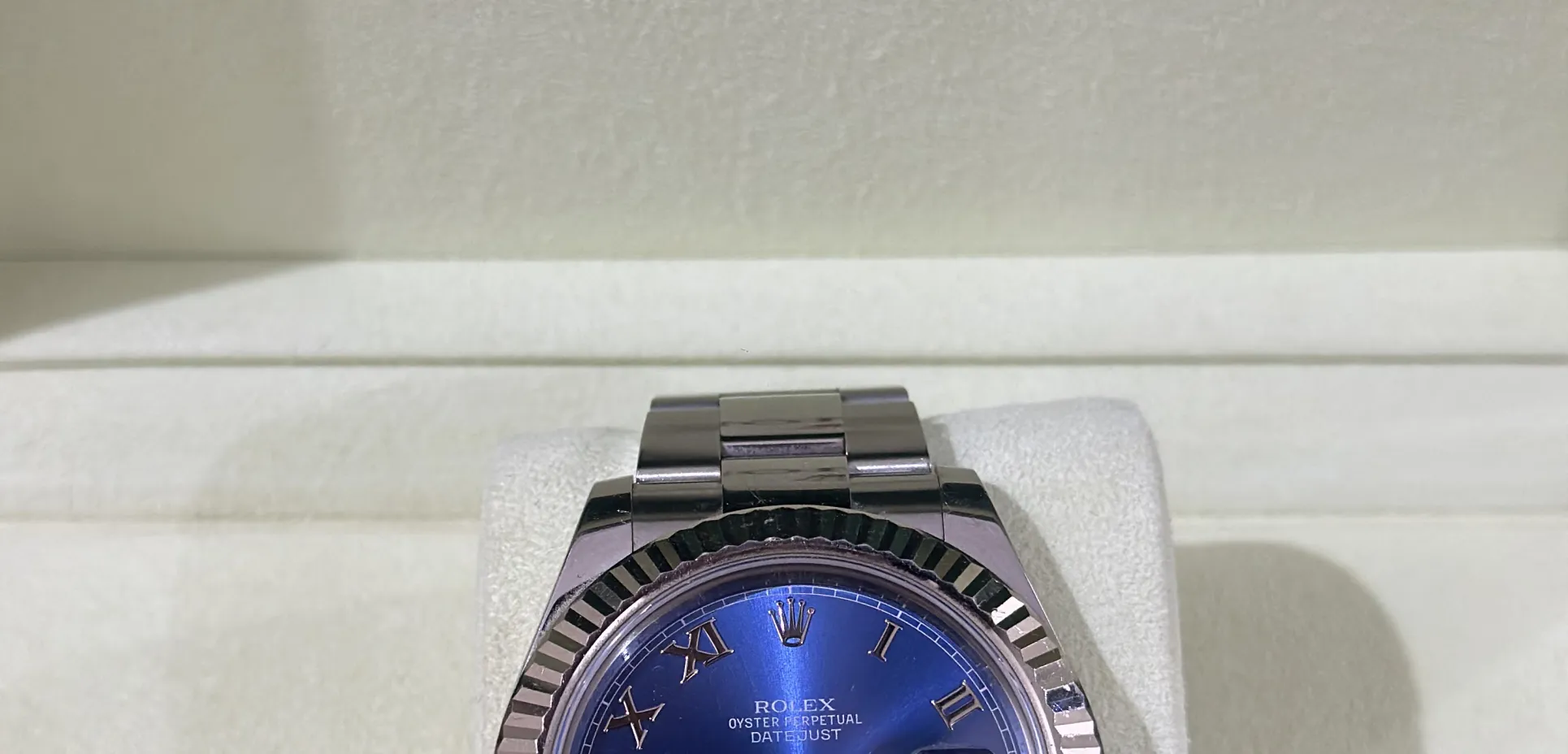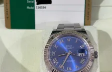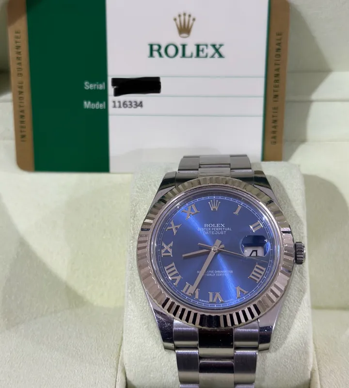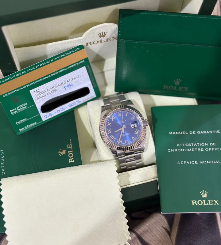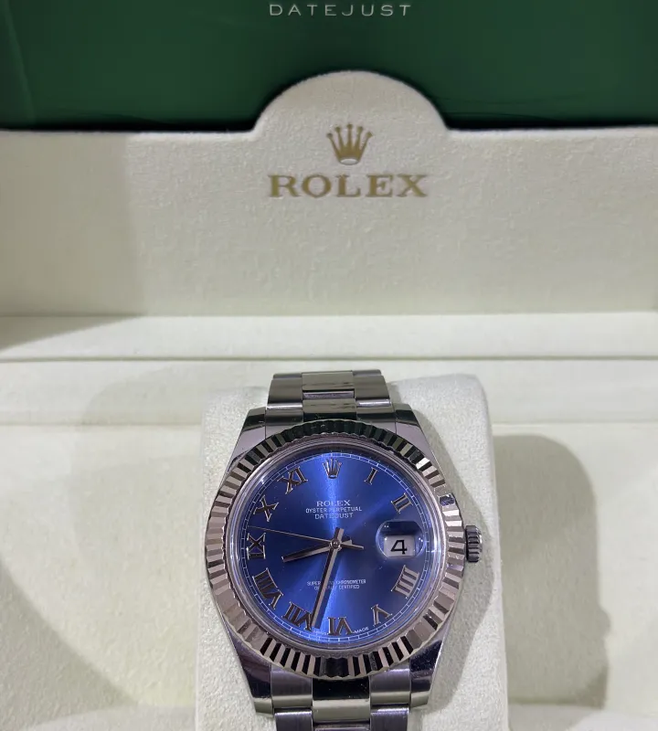 Rolex Datejust 41mm Blue Roman Fluted Bezel 2015 Full Set with 13 links including end links, never